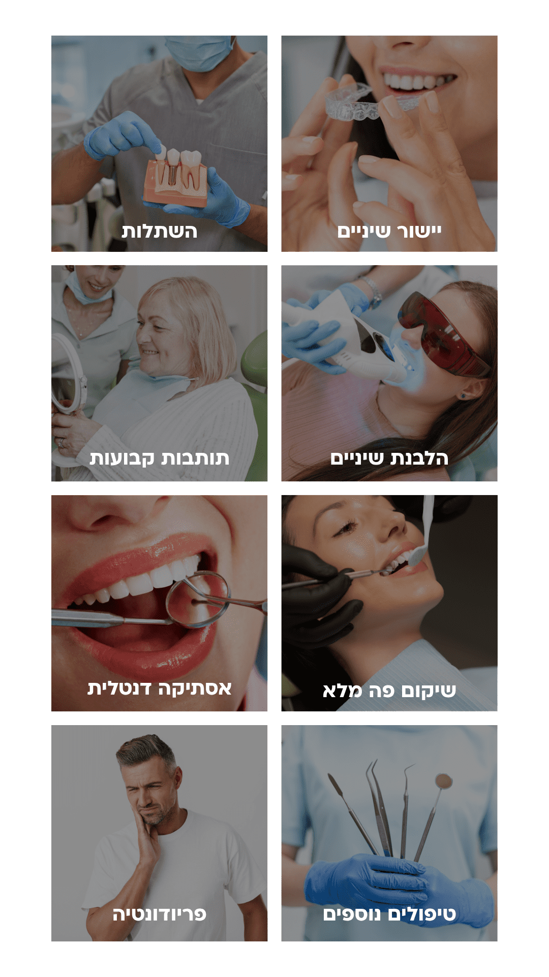 המרפאה נועדה להעניק למטופלים מגוון רחב של שירותים,לשם כך ניתן למצוא רופאי שיניים במגוון התמחויות הקשורות לבריאות הפה והחניכיים. הקמנו צוות מקצועי ברמה הגבוהה ביותר עם ניסיון מוכח בתחום.אנו מציעים מקצועיות בכל אחת מהתחומים השונים.