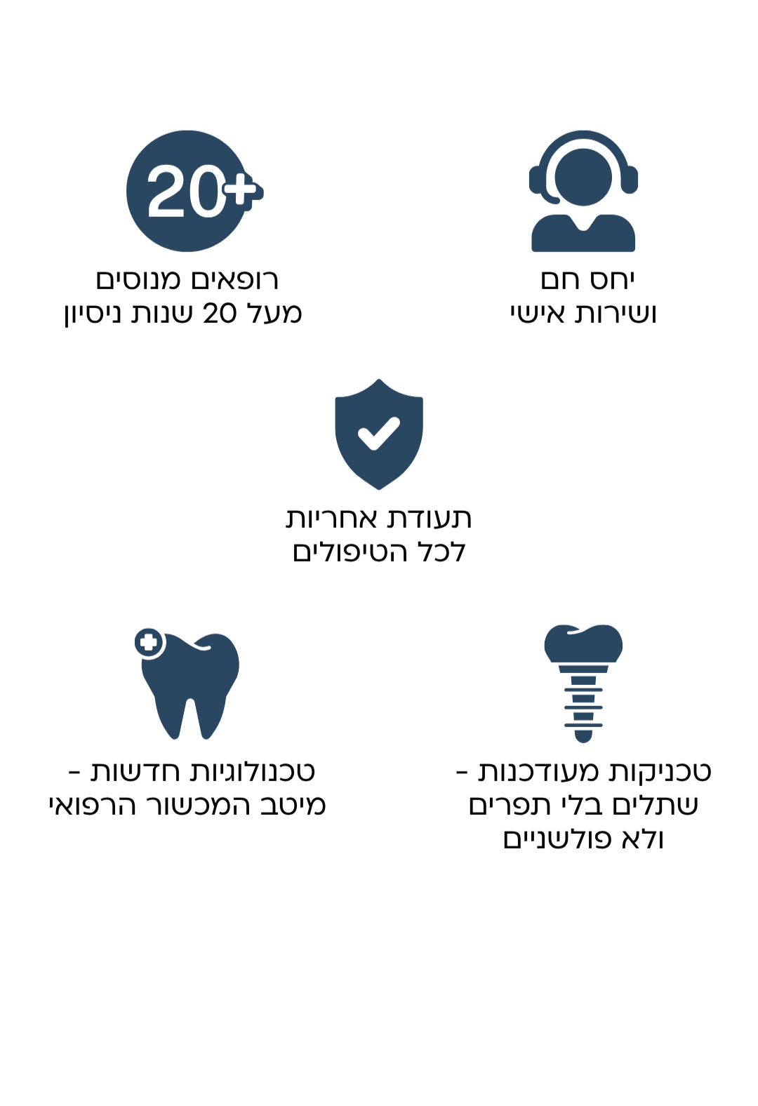 איכות החומר האנושי ויעילותם של הצוות, מביאים את המטופל למקום של שקט נפשי ורוגע, שבו אנו מאחלים לכם להיות.